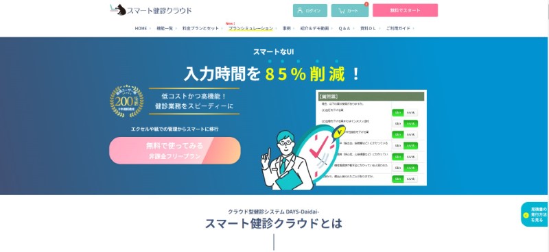 DAYS -Daidai-は、低コストで利用できるにも関わらず健診業務に必要な機能がワンストップで揃うクラウド型の健診システムです。なんと1年間利用無料の非課金フリープランを用意。